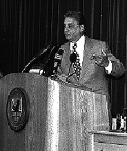 Der Präsident der Föderativen Republik Brasilien, Prof. Dr. Fernando Henrique Cardoso, wurde am 20. September in einer feierlichen Zeremonie zum Ehrendoktor des Fachbereichs Politische Wissenschaft der Freien Universität ernannt. Die Lau datio hielt Bundesminister a.D. Hans Matthöfer. Den Wissenschaftler Cardoso würdigten Prof. Dr. Elmar Altvater, Fachbereich Politische Wissenschaft, und Prof. Dr. Manfred Nitsch, Lateinamerika-Institut.