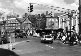 Nur eine U-Bahn-Station in Richtung MIT und Downtown Boston entfernt liegt der Central Square, wo sich dem Beobachter das "andere Amerika" darbietet. Nicht der Wordsworth Buchladen und Cardullos Gourmet Shop, sondern Woolworth und Dunkin Donuts beherrschen das Bild. Daneben verstaubte Auslagen des heruntergekommenen Einzelhandels, aber auch Künstlerstudios, eine alternative Musikszene und zahlreiche Restaurants aller Nationalitäten. Und vor Lucy Parsons Center - einem linkslastigen Buchladen mit Kommunikationszentrum und 20jähriger Tradition - tönen allsonnabendlich die Glaubensbekenntnisse der martialisch anmutenden, fundamentalistischen Black Israelites, stets mißtrauisch von der Polizei observiert. Welten scheinen Harvard und Central Square zu trennen.