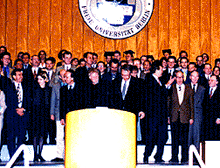 Seit 1993 verabschiedet der Fachbereich Wirtschaftswissenschaft seine Absolventinnen und Absoventen wieder feierlich ö "Anzug sollte schon sein". In Schale geschmissen erschienen die Erfolgreichen denn auch zur Zeugnisübergabe am 21. Dezember im Audimax