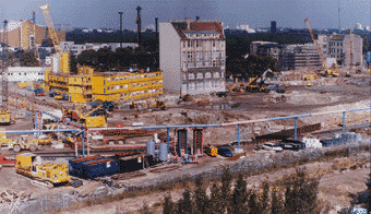 Baustelle Debis am Potsdamer Platz (1995)Was also ö um zentrale Probleme anzusprechen ö tun, um die zentralen Ziele internationaler Politik anzugehen? Was tun, um einen gerechten Frieden zu halten bzw. ihn wie im Beispiel Bosniens erst zu sichern, nach dem die europäische und auch die deutsche Politik jahrelang versagt haben? Was tun, um die ungerechtfertigte Kluft zwischen einigen Wohlstandsgesellschaften im Westen einerseits und einer um sich greifenden Verelendung in wachsenden Teilen der sogenannten Dritten, aber auch der Zweiten Welt nicht noch zu vergrößern und damit ethnische Konflikte nicht noch zusätzlich zu provozieren? Was tun, um den daraus resultierenden Migrationsdruck nicht durch eine Politik der Festung Europa abzuschotten, sondern seine Ursachen abzubauen?