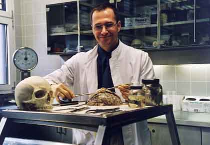 Foto: Portnoi Ich gestehe, dass das seinen Reiz hat. Nicht zuletzt, weil Gregor Edelmann nicht nur ein hervorragender Autor, sondern auch ein guter Journalist ist, der für jedes Drehbuch absolut penibel recherchiert. Ich glaube, er kennt sich in unserer Bibliothek mittlerweile besser aus als mancher Institutsassistent. Deshalb musste er auch ab und an gebremst werden, weniger von mir, sondern vielmehr vom Dramaturgen Dr. Lutz Groth. Dieser verstand es mit diplomatischem Geschick, Ausdauer und gütiger Kompromisslosigkeit, Gregor Edelmann immer wieder in die Welt der Fernsehserie zurückzuholen. Eigentlich ist jede einzelne Folge dicht wie ein Kinofilm. Umgekehrt haben sich auch Drehbuchautor und Dramaturg in den Bann der realen Rechtsmedizin ziehen lassen. Und nicht nur die vordergründigen Fragestellungen und Probleme fanden Einlass in die Serie und ihre Charaktere, sondern auch so alltägliche Dinge wie der enge Finanzrahmen in Justiz und Universität, der manche wichtigen Untersuchungen nicht erlaubt, obwohl sie rechtsmedizinisch angezeigt sind, oder die täglichen "kleinen Fälle", die eigentlich keine großen Sachen sind, aber doch Zeit und Einfühlsamkeit erfordern. Da wo auch Ulrich Mühe vom Mediziner zum Arzt wird. Die Serie ist unglaublich realistisch, vor allem dank der auf mich überzeugend wirkenden Schauspieler, der hervorragenden Regie sowie der erschreckend guten Maske. Zwei Komplexe in der Serie stimmen mit der Realität jedoch nicht überein: Erstens führen wir als Rechtsmediziner keine Ermittlungen auf eigene Faust durch, was hier dramaturgisch aber sein muss. Und zweitens: Immer wenn die Story geschrieben war, dann schauten Gregor Edelmann und ich uns an und hatten ein dummes Gefühl. Warum? Die Fälle, die dort beschrieben werden, funktionieren wirklich. Manche Tötungsmethode wäre praktisch nicht nachweisbar gewesen. Also haben wir überall etwas verändert, hier eine andere Dosis, dort anstatt eines Giftes eine harmlose Substanz genannt und immer wieder mal eine Untersuchungsmethode verschwiegen, mit der man das Ganze sofort hätte feststellen können. Fiktion und Realität wären sonst vielleicht eins geworden. | |||||||||