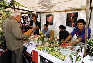 Die Tombola zählt genauso zum festen Bestandteil des Sommerfestes wie der so genannte Campusmarkt, auf dem sich die Fachbereiche, Zentralinstitute und Zentraleinrichtungen der FU, aber auch externe Institutionen präsentieren. Im vergangenen Jahr etwa lockte der Botanische Garten nicht nur durch seinen attraktiven Stand zahlreiche Interessenten an. Auch ein kniffliges Multiple-Choice-Gewinnspiel zu botanischen Themen wollten sich viele nicht entgehen lassen die Chance, mit einer Grünpflanze belohnt zu werden, war zu verlockend. Die Kunsthistoriker/innen glänzten mit der Präsentation all ihrer Projekte und Publikationen, während die Chemiker/innen die Besucher explosiv verzauberten.