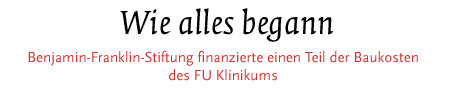 Die Benjamin-Franklin-Stiftung trägt mit 60 Mio. Mark rund ein Fünftel der Gesamtkosten zur Realisierung des Klinikums bei.