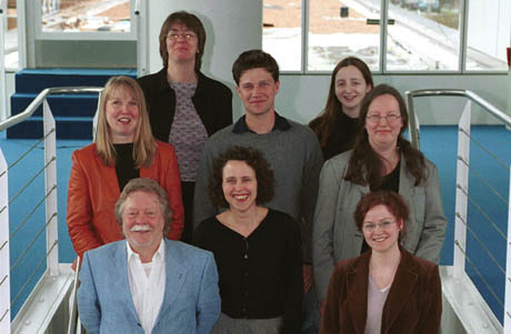 Das Team des CareerService der FU. Untere Reihe: Dr. Dieter Grühn, Bettina Deckart, Myriam Schottstädt,mittlere Reihe: Christine Arlt, Johannes Geffers, Ute Lauzeningks. Oben: Christiane Dorenburg, Andrea Theocharis