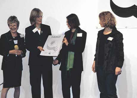Der Aufwand war freilich immens, denn zum ersten Mal in der Geschichte von TOTAL E-QUALITY war die Zertifizierung auch für wissenschaftliche Einrichtungen möglich. Als die Frauenbeauftragte der FU, Mechthild Koreuber, dann im vergangenen Juni von den neuen Möglichkeiten hörte, die Anstrengungen der letzten Jahre objektiv bewerten zu lassen, überzeugte sie die Hochschulleitung der Universität zur Teilnahme. Es war ein Sprung ins kalte Wasser, denn niemand kannte den Fragebogen, der auf die Bewerber der ersten Auszeichnungsrunde wartete, und so war dann auch die Zusammenstellung der Bewerbungsunterlagen mit dem penibel ausgefüllten Fragebogen und den unzähligen Belegen, die zum Beweis der Selbstaussagen des Fragebogens beigefügt werden mussten, ein Lauf gegen die Zeit. Das war eine Herausforderung für die FU, sagt Mechthild Koreuber mit einem leicht ironischen Blick auf die Behäbigkeit, die man großen Institutionen so gerne nachsagt. Stolz ist sie, dass man die Aufgabe so überzeugend gemeistert hat: Fünf Aktenordner voll mit Dokumenten wurden schließlich zum Einsendeschluss im November 2001 auf den Postweg gegeben, um der Jury vorgelegt zu werden.