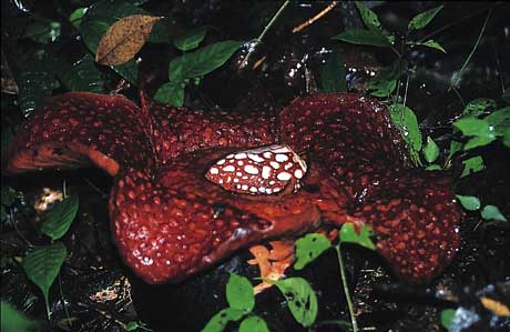 Rafflesia tuan-mudae: Aasfliegen werden von der übel riechenden Blüte der Pflanze magisch angezogen.