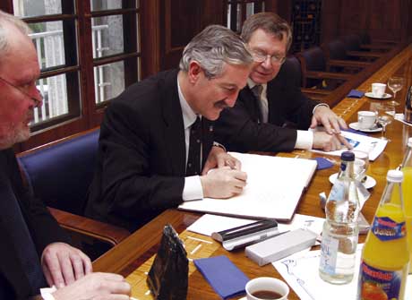 Der Bildungsminister Dr. Celso Currás Fernández und der Staatsekretär für Sprachpolitik, Xesús P. González Moreiras, trugen sich ins Gästebuch der FU ein.