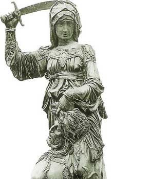 Das eindringlichste biblische Motiv der Männer mordenden Frau: Judith enthauptet Holofernes. Skulptur von Donatello in Florenz, erschaffen um 1456/57.