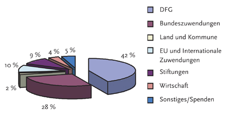 Durch eine Steigerung der Drittmitteleinnahmen in der Veterinärmedizin um 49% und eine Fortschreibung der Einnahmen der Humanmedizin fast auf dem Vorjahresniveau weist die Gesamtbilanz der Fächergruppe Medizin eine Erhöhung um 3% auf. In der Fächergruppe Sprach- und Kulturwissenschaften ist ein Zuwachs von 2% zu verzeichnen, in den Sozialwissenschaften sogar um 13%. Bei den Sozialwissenschaften resultiert die Positiv-Bilanz aus erheblichen Zuwächsen im Fachbereich Erziehungswissenschaften und Psychologie, während die ohnehin auf niedrigem Niveau weiterhin sinkenden Einnahmen in den Rechts- und Wirtschaftswissenschaften weniger erfreulich sind.