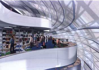 Nach einer Unterbrechung beim Bau der neuen Philologischen Bibliothek in der Rostlaube der Freien Universität nimmt die architektonische Vision von einem geometrisch gekrümmten Baukörper mit unverwechselbarer Formensprache nun Gestalt an: Nachdem der Rohbau bereits Ende November 2002 fertiggestellt worden ist, wurde jetzt der Auftrag für die kuppelförmige Hüllkonstruktion vergeben. Schon im Rohbau sind die Rückstufung der Ebenen nach oben sowie die gekurvten Geschossränder, die später die Leseplätze aufnehmen werden, deutlich erkennbar.