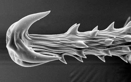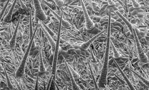 Hakenhaare, ca. 0,3 mm lang