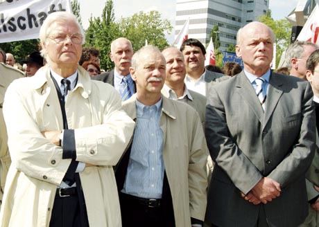 Schulterschluss der Berliner Universitäten: Gemeinsam kämpfen sie für eine zukunftsfähige Wissenschaftspolitik. V.l.n.r. in der ersten Reihe: Prof. Gaehtgens (FU), Prof. Mlynek (HU) und Prof. Kutzler (TU).