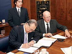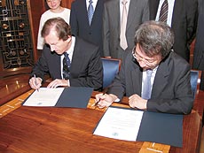 Der Präsident der Freien Universität Berlin, Professor Dr. Dieter Lenzen, und sein japanischer Amtskollege von der Nihon University, Professor Yukiyasu Sezai, unterzeichneten am 4. September einen Kooperationsvertrag in der Freien Universität. Professor Sezai wurde von Dr. Tsukasa Oda, Professor für Rechtswissenschaften, und Takashi Okamoto, Leiter des Internationalen Büros der Nihon University, begleitet. Die Vereinbarung beinhaltet u. a. den Austausch von Stipendiatinnen und Stipendiaten. Die beiden Universitäten verpflichten sich darin wechselseitig zur Vergabe von ein bis zwei Stipendien an Studierende der Partneruniversität. Außerdem verzichtet die japanische Universität auf die Studiengebühren. Während sich im Land der aufgehenden Sonne immer weniger Studierende immatrikulieren einst waren es Spitzenwerte von neunzig Prozent eines Jahrgangs hat die Studiennachfrage in Deutschland nach einem leichten Rückgang in den 90er Jahren wieder zugenommen.