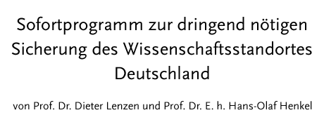 Im Sofortprogramm sind wettbewerbsfördernde Strukturveränderungen, Maßnahmen zur Qualitätssicherung sowie jährliche Investitionen von zehn Milliarden Euro für Forschung und Entwicklung vorgesehen (siehe Kasten). Bund und Länder kommen nicht darum herum entsprechende Ansätze für die Budgets des Jahres 2005 jetzt einzuplanen, so Prof. Dr. Dieter Lenzen, ansonsten kann das Ziel bis zum Jahr 2010 jährlich 3 Prozent des Bruttoinlandsproduktes in Forschung und Entwicklung zu investieren, nicht ernst gemeint sein. Lenzen und Henkel appellierten an Politik, Medien und Öffentlichkeit, die derzeitige Diskussion um mehr Innovationen in der Gesellschaft zu nutzen und ein derartiges Programm zu unterstützen. Die aktuelle Debatte um ein Engagement des Bundes im Wissenschaftsbereich hat zwar eine Reihe von Vorschlägen generiert. Diese drohen jedoch, sich auf Rhetorik oder spektakuläre Einzelmaßnahmen, wie z.B. die Gründung einer Eliteuniversität, zu reduzieren. Auch die erste Sitzung des neu gegründeten Innovationsrates im Januar brachte aus der Sicht der Wissenschaft keine neuen Impulse. Wir sollten uns an der kanadischen Regierung ein Beispiel nehmen, die unter anderem beschlossen hat, 2000 zusätzliche Lehrstühle zu finanzieren. Nur durch einen derartigen Befreiungsschlag haben wir die Chance, bei Bildung und Forschung wieder Anschluss an die Weltspitze zu schaffen und unseren Wohlstand zu sichern. Durch die von uns vorgeschlagenen Maßnahmen würden schließlich auch in Deutschland im Wettbewerb Spitzenuniversitäten entstehen, erläuterte Henkel.
