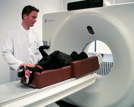 Tatsächlich ist die CT-Technik schon über zwanzig Jahre alt. Die Maschine wendet zunächst das von Röntgenaufnahmen bekannte Verfahren an. Nur liegt der Patient, in diesem Fall das Tier, betäubt auf einer Bank, während Röntgenröhre und ein gegenüber liegender digitaler Detektor um den kleinen Körper rotieren. Währenddessen fährt die Bank mit dem Tier durch die Ringkonstruktion.