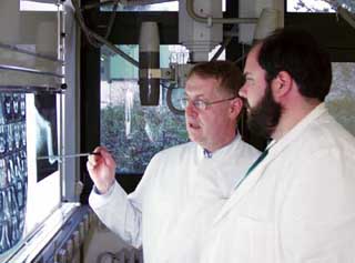 Klinikchef Leo Brunnberg (links) mit Mitarbeiter Guido Fritsch.