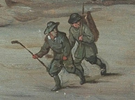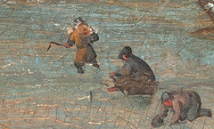 In einer Gesellschaft deren Arbeits- und Freizeitkultur sich weitgehend im Freien abspielte, hielt es die Menschen auch im Winter nicht im Haus. Damals wie heute wurden die Leute und ganz besonders die Kinder von den zugefrorenen Seen und Flüssen angelockt. Diese Kinder hier schlittern über das Eis - vielleicht auf einem Stück Stoff oder etwas ähnlichem.