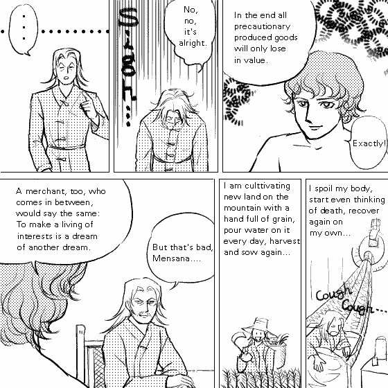 This complaint of Robinson has been added to the line of the story. This part is not found in Gesell's original text. It may be an example of how a person being made to act for his self-interest even expects a reward from others.