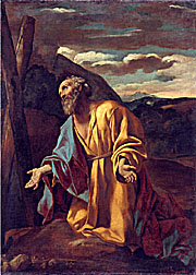 Der hl. Andreas vor dem Kreuz kniend