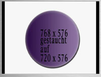 Das Vorgehen rechts wäre bezüglich der Kreisproportionen korrekt, wenn Sie den exportierten DV-Film direkt für die Bildschirmausgabe auf einem Computer (also auch fürs Web) verwenden (also z.B. auf CD-ROM pressen). Tatsächlich würde aber bei letzterem Vorgehen der komplette Film verzerrt, nur die von Ihnen auf diese Weise hinzugefügten Bildelemente nicht.