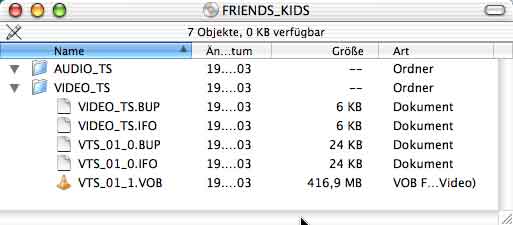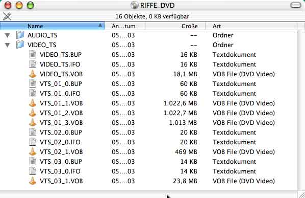 Nachfolgend finden Sie am Beispiel einer mit iDVD erstellten VideoCD die vorgeschriebene Struktur einer DVD.