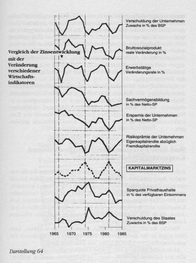 64. Vergleich der Zinsentwicklung mit der Veränderung verschiedener Wirtschaftsindikatoren 335