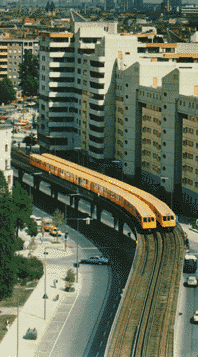 ...von der Avus auf die Linie 1Die Vermeidung einer Entwicklung nach dem "Modell Los Angeles" hängt wesentlich von der Verkehrspolitik ab. Ausgelöst durch die plötzliche "Hinzugewinnung eines Umlandes" und beschleunigt durch den bevorstehenden Regierungsumzug ist das gesamte System der Mobilität in der Region in einem Wandel begriffen. Szenarien zufolge muß dabei zwar mit einer Zunahme des Verkehrsaufkommens gerechnet werden, offen ist jedoch, in welchem Umfang das Verkehrsvolumen wachsen wird und welche Verkehrsträger dabei vornehmlich genutzt werden.