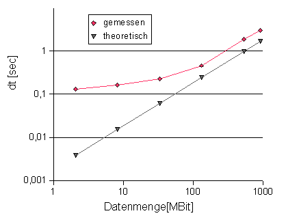 Um herauszufinden, wie lange die Wartezeiten sind, die durch ein Anhalten des Programms und der direkten Übermittlung von Programmdaten über eine Socketverbindung über das Gigabit-Testbed verursacht werden, wurden eingehende Tests der Datenübertragungsrate durchgeführt (siehe Abschnitt II.5 "Netz-Durchsatzmessungen"). Es zeigte sich, dass die direkte Beeinflussung des parallelisierten Programms durch Anforderung einer Socket-Ausgabe einen Performance-Verlust zur Folge hat. Dies kann zum Verlust an Stabilität des Programmlaufs führen, da Störungen der Datenübermittlung bei diesem Konzept einen Abbruch des Simulationsprogramms zur Folge haben können. Die erzielbare Datenübertragungsrate, die das Gigabit-Testbed ermöglicht, erwies sich für unsere Zwecke als ausreichend.