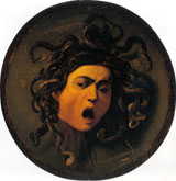 Merisi da Caravaggio, Medusenhaupt. 1591-1599. Öl auf einem mit Leder überzogenen