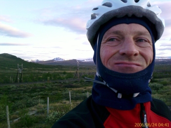 An einem Anstieg überhole ich eine Gruppe Norweger. Wenig später haben sie mich wieder eingeholt. Die Führung sagt zu mir etwas, das ich sinngemäß übersetze als "Deine Chance, hänge Dich hintenan". Das mache ich. Auf gerader Strecke fahren sie ein ordentliches Tempo. Im Windschatten lässt es sich aber gut aushalten. Bergauf klettert der Puls nie über 120, bergab nicht unter 100. Es ist ein Kraft sparendes aber dennoch schnelles Vorankommen. Diese Gruppe wird 24 Stunden brauchen. Jetzt wird mir bewusst, welche Fehler ich am Anfang der Tour gemacht habe; ich habe mich allzu oft zu zu schnellem Fahren verleiten lassen.