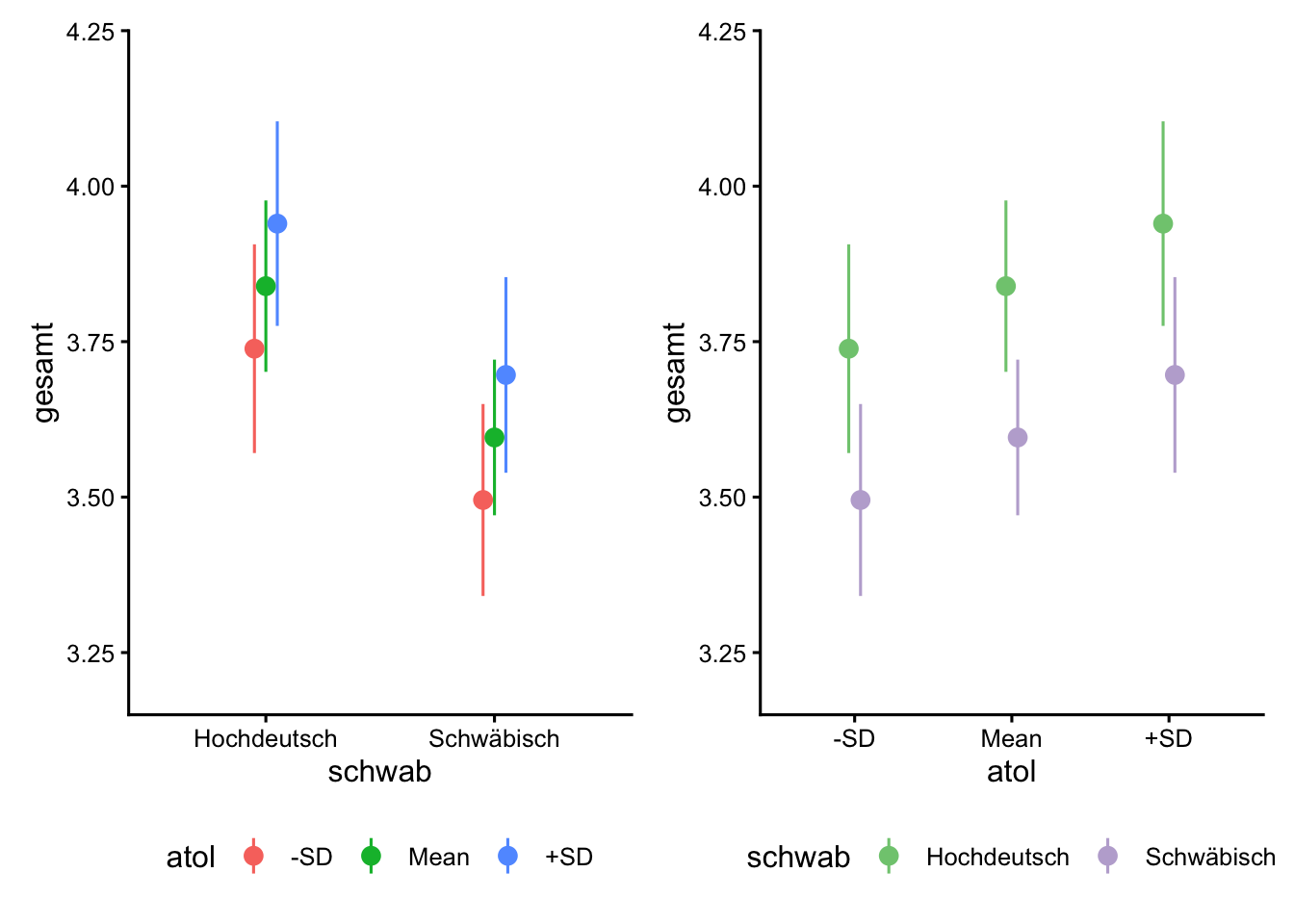 Vorhersagen des Modells mit zentriertem Moderator AtoL
