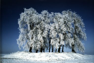 Der Bärenhügel mit seiner Baumgruppe in den verschiedenen Jahreszeiten, einmal winterlich verschneit und bereift, ...
