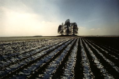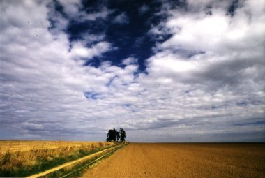 ... und im Herbst jenseits der abgeernteten Felder erscheint er klein im Vergleich zu den aufziehenden Wolken.