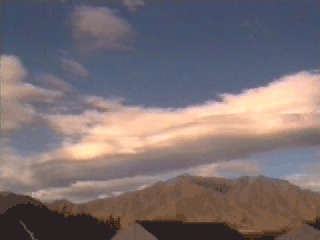 Über das Gebirge hinweg weht starker Wind, der milde Luft heranführt. In Lee der Gebirge entstehen Wogenwolken (Fachausdruck Lenticularis), die Föhn und Schneeschmelze kennzeichnen.