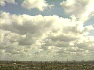 Diese recht kleinen und sich ständig verändernden Haufenwolken (Fachwort Cumuli) kennzeichnen einen sich langsam erwärmenden klaren und schönen Sommertag.