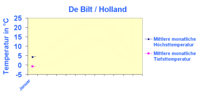 Mittlere monatliche Temperatur-Maxima und -Minima in De Bilt (bei Utrecht) in Holland.