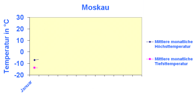 Mittlere monatliche Maximum- und Minimum-Temperatur in Moskau.
